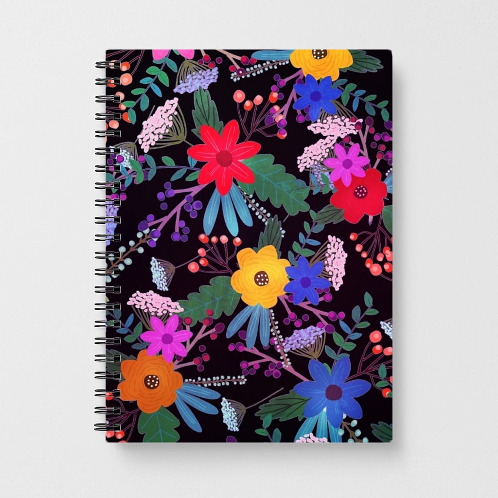 Black & Colourful Floral Pattern Notebook