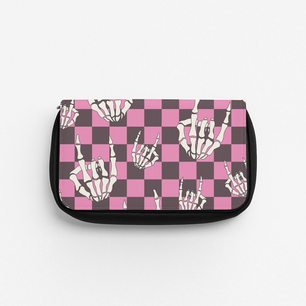 Get ready to rock out with our Rock On Skeleton wallet/flip phone case! Perfect for adding a touch of Halloween fun to your everyday essentials.