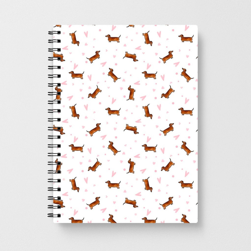 Whether you're a dog lover or just looking for a fun and functional notebook, our Dachshund Pattern - White Notebook is the perfect choice. Order yours today and let your creativity run wild!