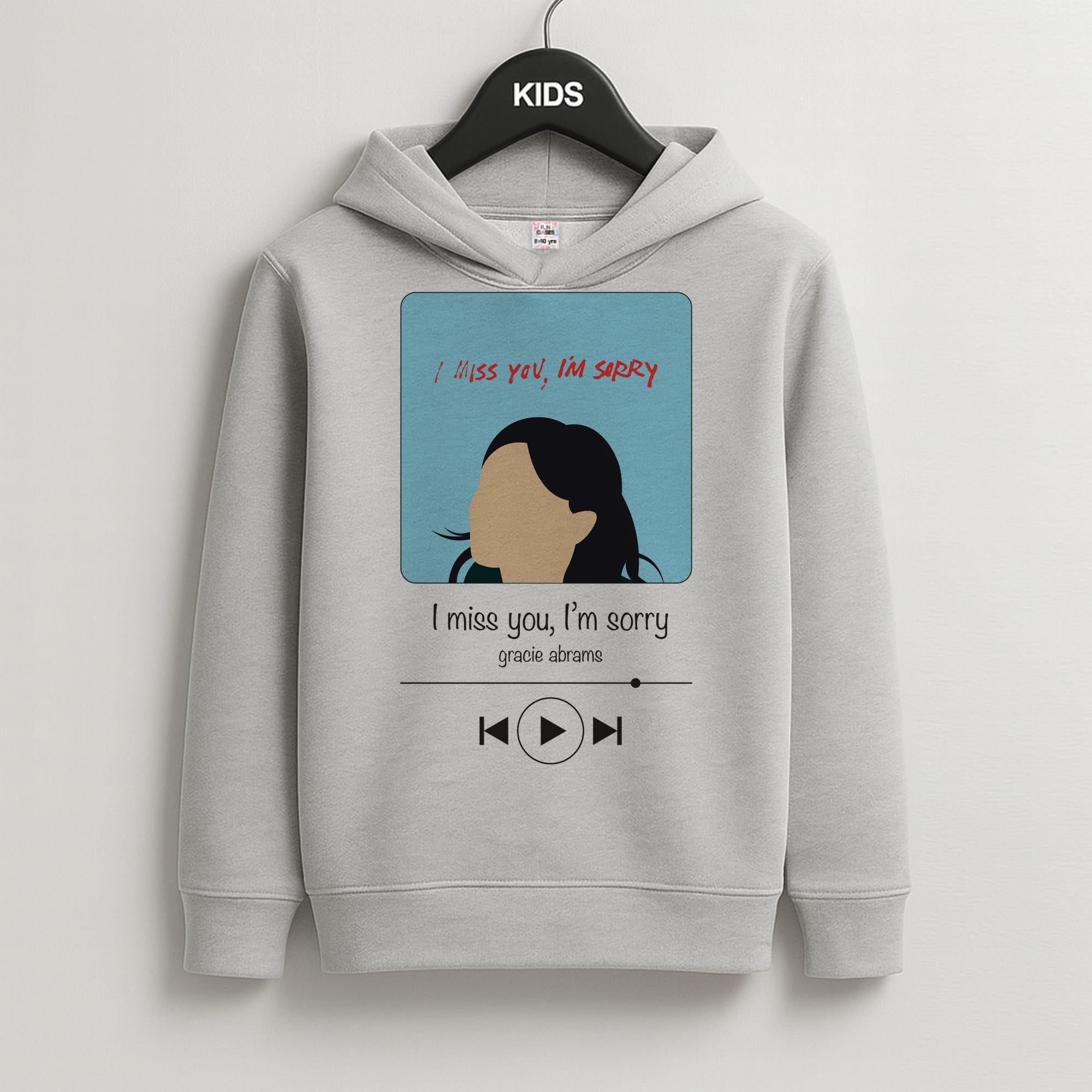 Get ready to show off your love for Gracie Abrams with this super cute 'I Miss You' kids hoodie from Fun Cases! Made from 100% polyester, this white hoodie features a vibrant Gracie Abrams print on the front that is sure to make a statement.