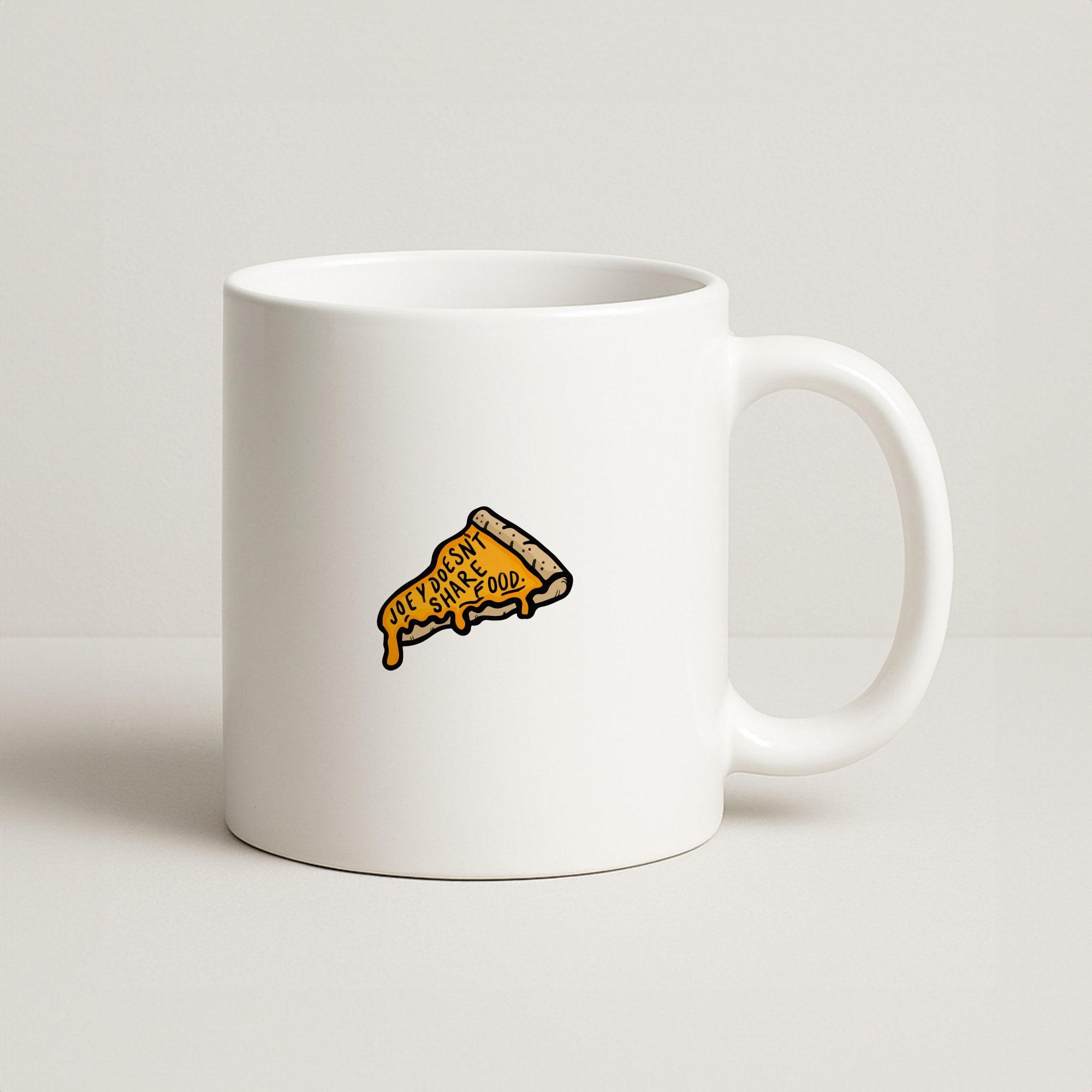 Are you a huge Friends fan? Do you live by the motto "Joey Doesn't Share Food"? Then this mug is perfect for you! Our 11oz ceramic mug features this iconic phrase in bold, eye-catching print.