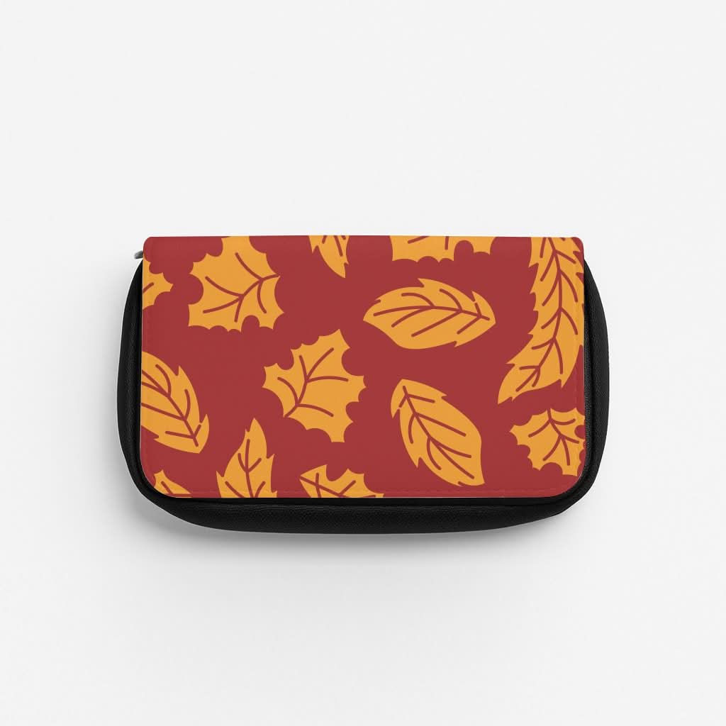 Orange Leaves Pattern Pencil Case