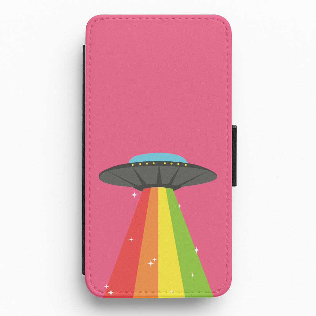 Rainbow Alien Spaceship Flip / Wallet Phone Case