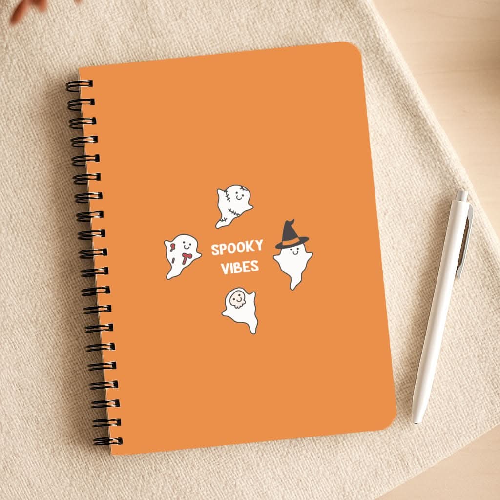 Designed with cute ghost illustrations, this notebook is sure to add a touch of fun to your school or work day. The spiral bound notebook is available in A4 or A5 size, making it easy to carry around with you wherever you go.