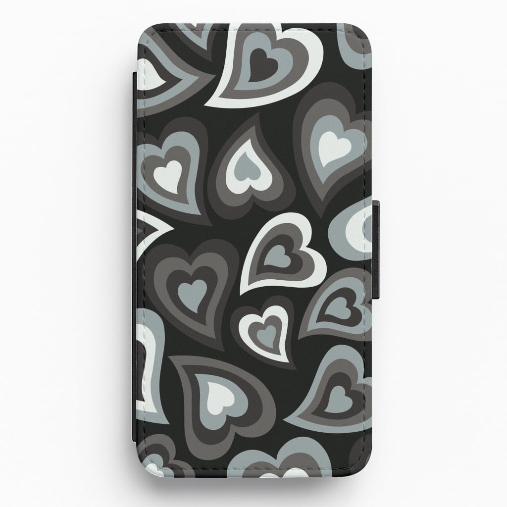 Black Hearts - Trippy Patterns Flip / Wallet Phone Case