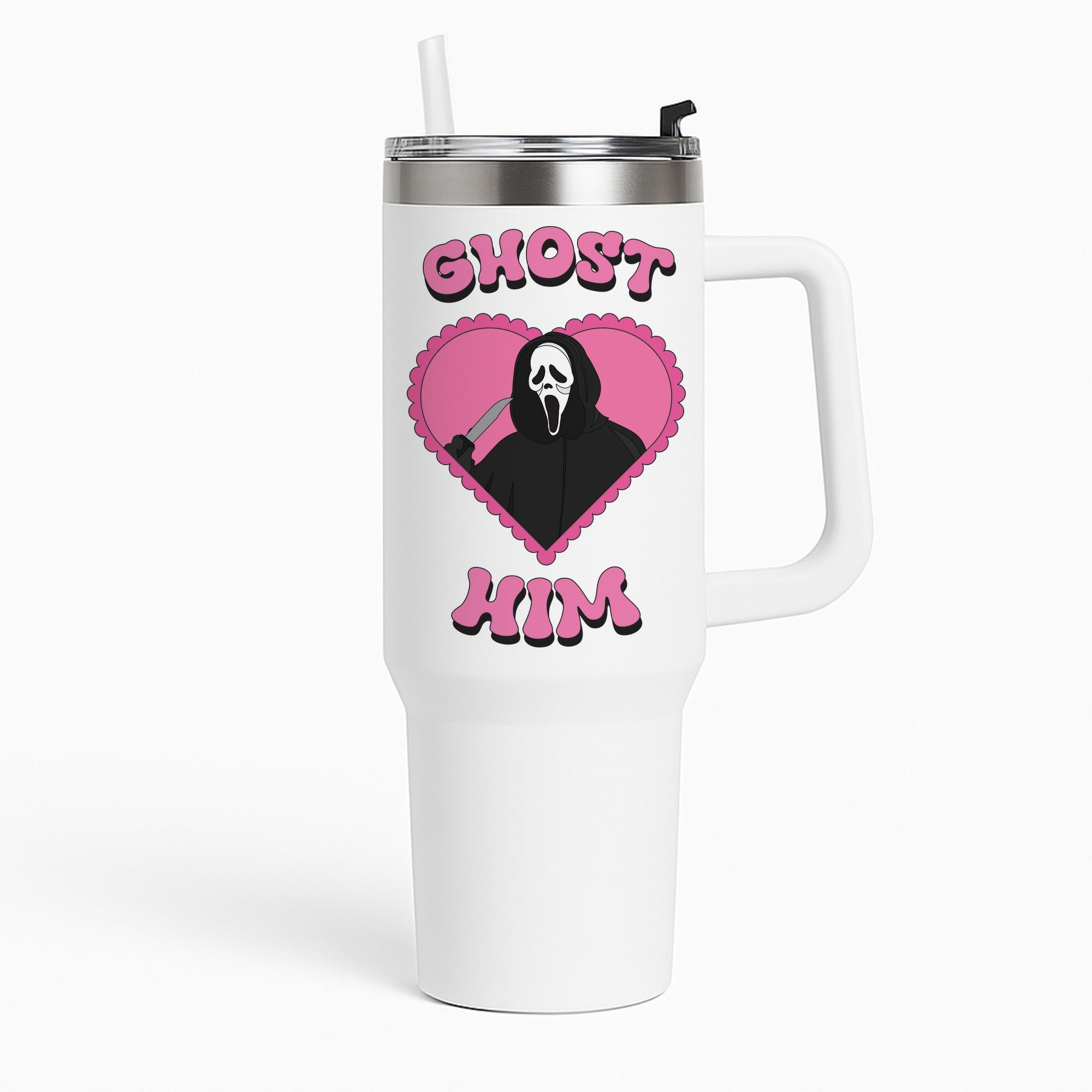 Get your spooky on with our Ghost Him necklace, inspired by the iconic Scream movie! This hauntingly cool design is available in a heart or circle shape, giving you options to suit your style.