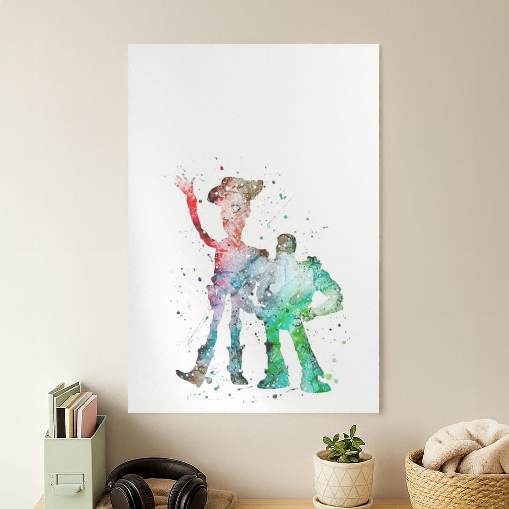 Watercolour Woody & Buzz A Story of Toys Fairytale Tote Bag