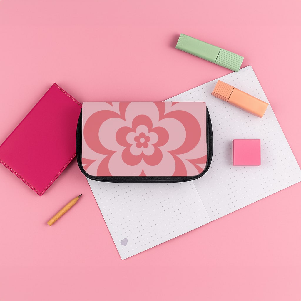 Pink Abstract Flower Pattern Pencil Case
