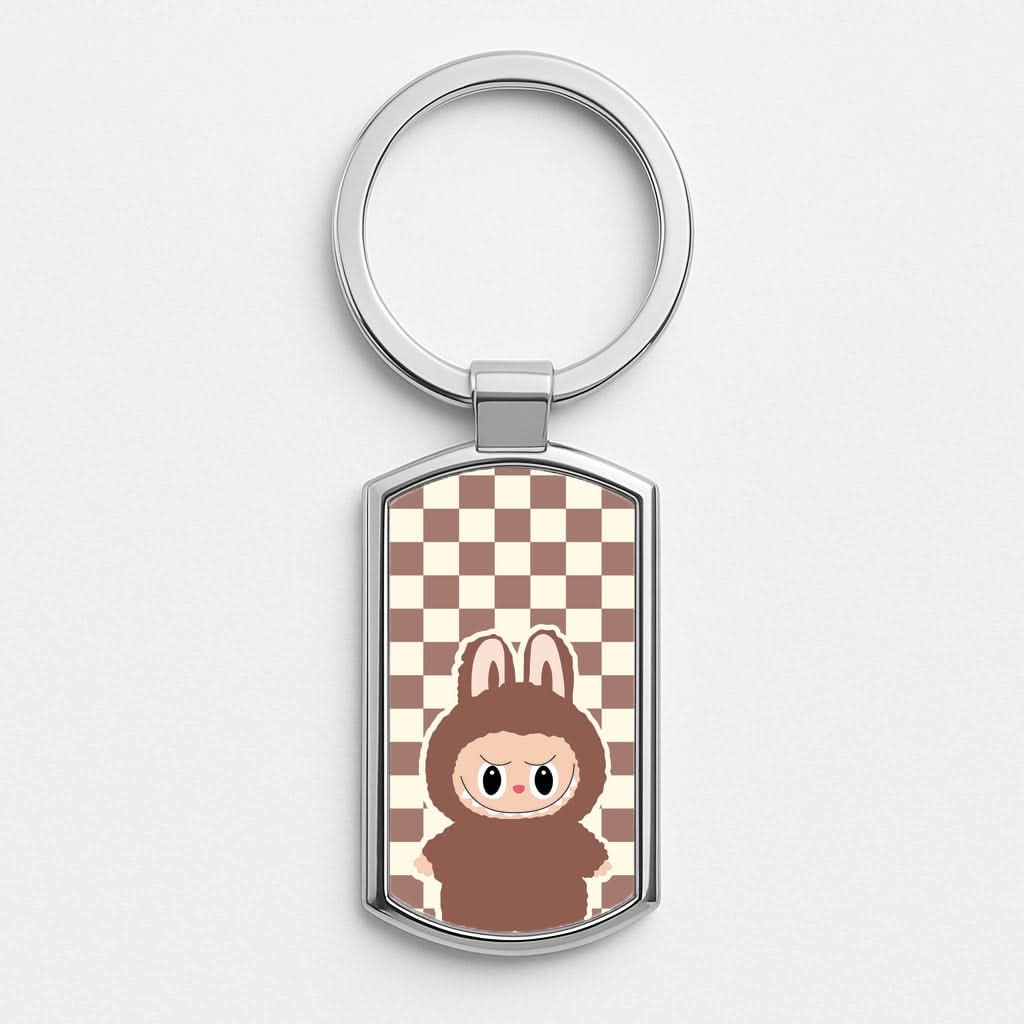 Checkered Cute Brown Monster Luxury Keyring