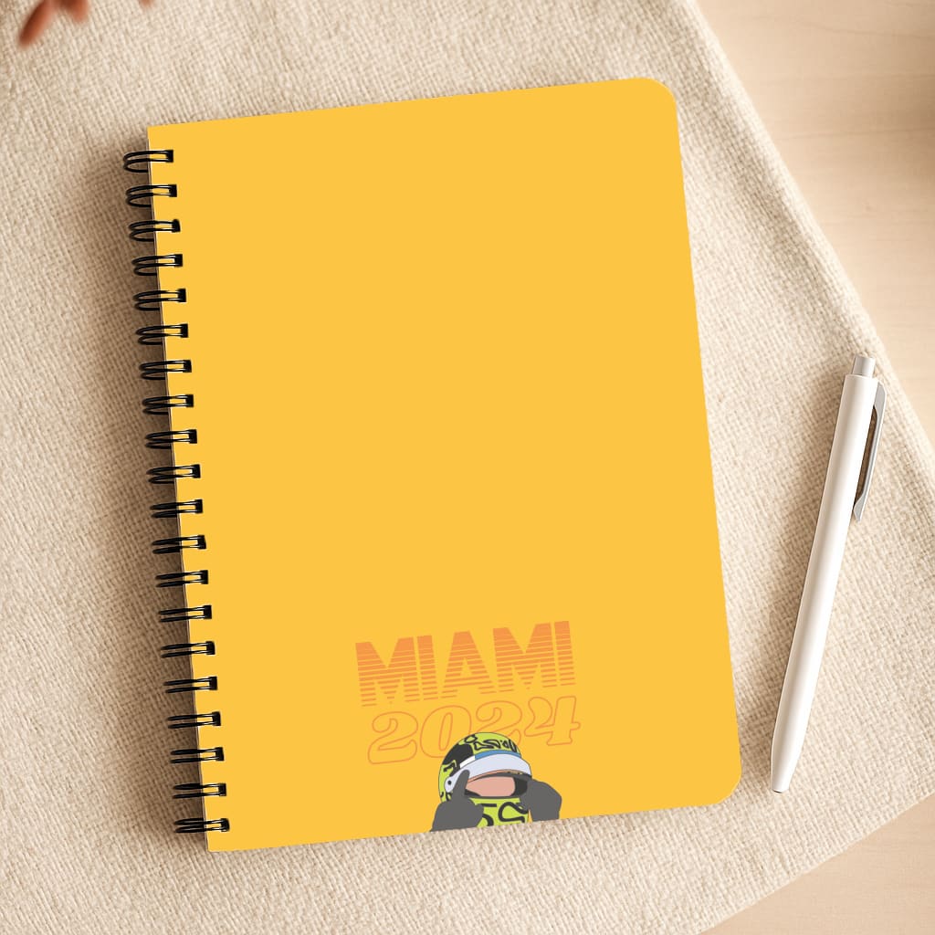 Choose from A4 or A5 size and enjoy the convenience of spiral binding for easy flipping. The printed plastic covers feature a cool Miami 2024 F1 design that will have you feeling like you're in the fast lane every time you pick it up.