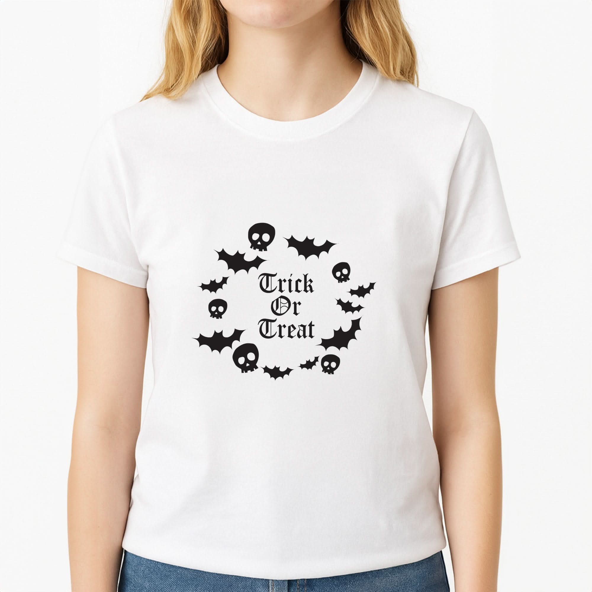 Get into the Halloween spirit with our Trick Or Treat Wreath T-Shirt from Fun Cases! Perfect for young teenagers looking to stand out at any spooky event.
